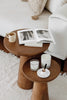 The product made of linden wood is painted with walnut color polish. The textures and patterns in the raw wood are evident under the polish. Each product is unique in pattern and texture. The wood used can have a different texture and pattern each time.